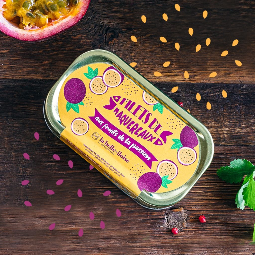 Concept visuel : une illustration ludique et romantique pour les filets de maquereaux aux fruits de la passion.