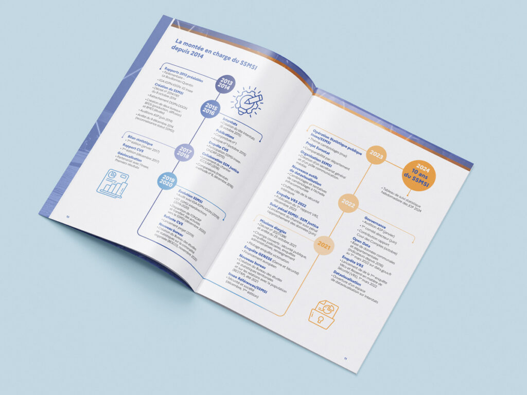 Le Service Statistique Ministériel de la Sécurité Intérieure (SSMSI) produit chaque année des publications de référence sur les questions de sécurité, de violences et de vécu citoyen. Plusieurs enquêtes et rapports majeurs ont été accompagnés graphiquement afin de rendre lisibles, accessibles et cohérents des contenus statistiques complexes, destinés à un large public institutionnel et professionnel.